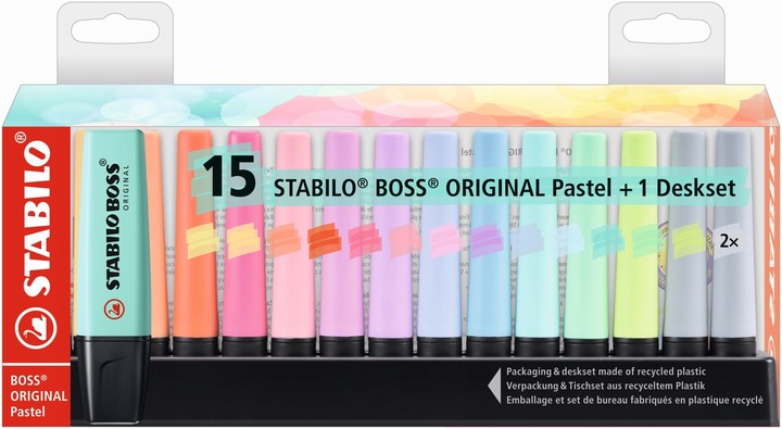 STABILO BOSS ORIGINAL to przede wszystkim unikatowy design i kultowe fluorescencyjne kolory! "Ojciec wszystkich zakreślaczy" narodzil sie w 1971 roku. Dziś cieszy sie popularnością wśród milionów ludzi w kazdym wieku na calym świecie.
